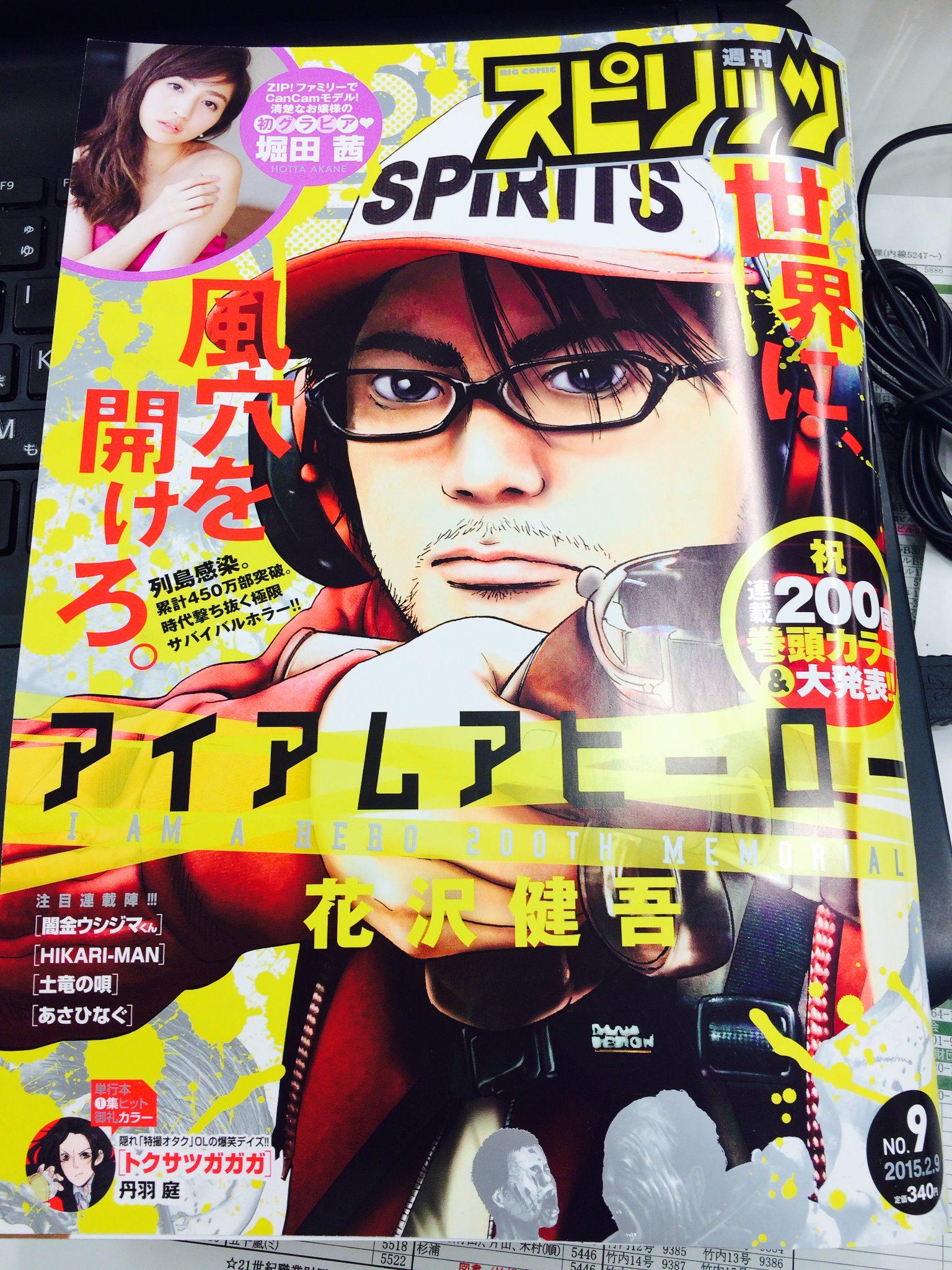 Twitter 上的 花沢健吾2誌同時連載開始 公式 本日発売のスピリッツ9号 花沢健吾 アイアムアヒーロー 連載200回記念号です 雑誌表紙も主人公 鈴木英雄のイラストがどかんと 巻頭カラーです Http T Co 1ici6zbzcb Twitter